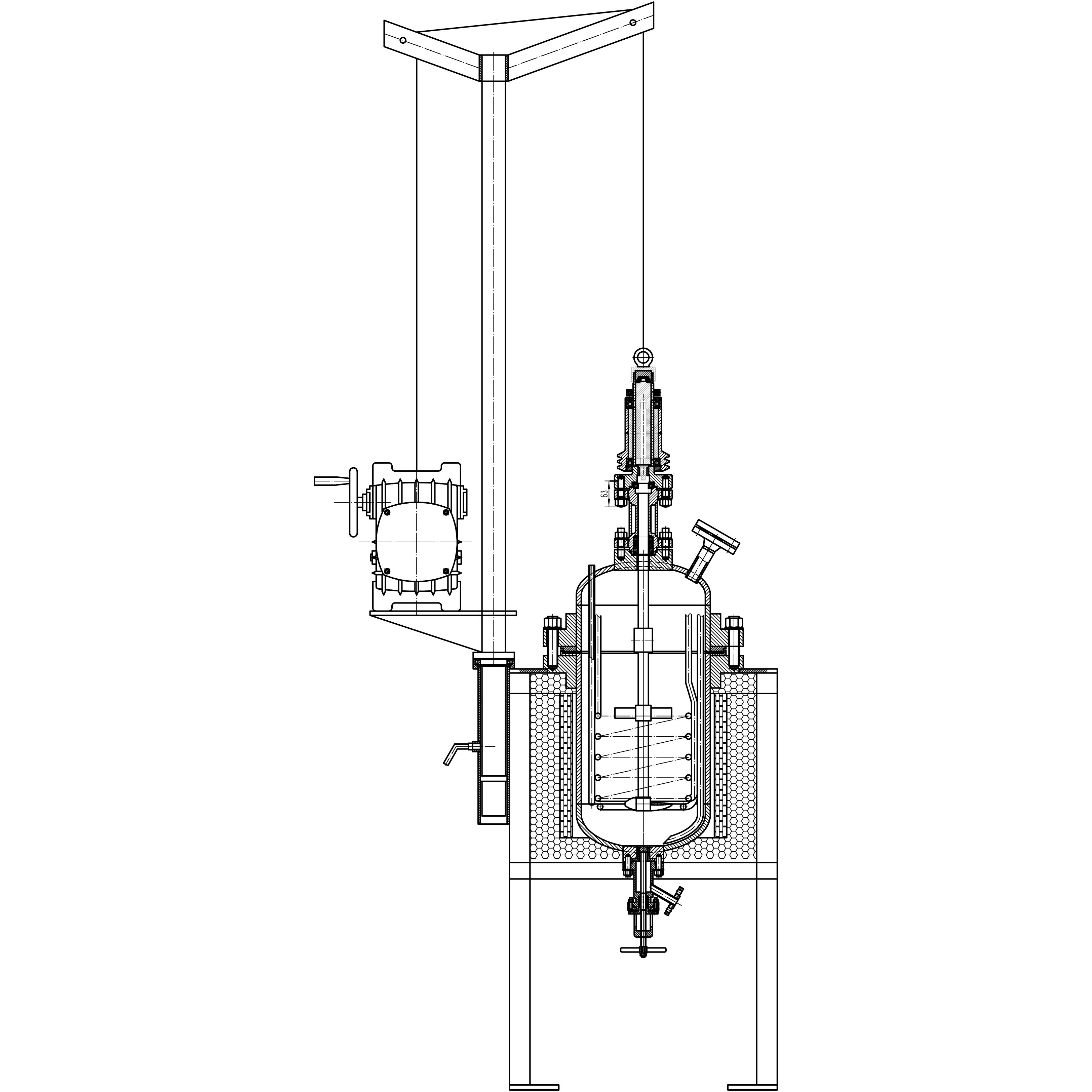 磁力攪拌的核心部分是環(huán)形強(qiáng)磁力偶合攪拌裝器,多個(gè)磁鋼環(huán)制成內(nèi)外兩個(gè)強(qiáng)大的永磁體;內(nèi)磁鋼體密閉于不銹鋼制成的密封筒體內(nèi)連接攪拌部分,密封筒體與釜蓋、釜體、緊固聯(lián)接形成靜密封腔,使反應(yīng)介質(zhì)完全處于靜密封狀態(tài)中,無(wú)任何泄漏、污染和人身危險(xiǎn);調(diào)速電機(jī)帶動(dòng)外磁鋼體,強(qiáng)磁力不經(jīng)接觸穿過(guò)不銹鋼制成的密封筒體,與密閉于密封筒體里的內(nèi)磁鋼體的強(qiáng)磁力相互吸引、相互自行定位作用于軸向旋轉(zhuǎn)牽引上,進(jìn)行高溫高壓攪拌反應(yīng)。